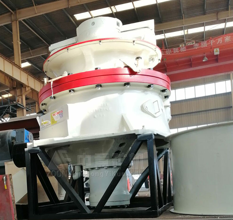 CH底部單缸液壓圓錐破碎機采用液壓系統(tǒng)代替彈簧系統(tǒng),用底部液壓缸控制動錐起落達(dá)到調(diào)整排礦口的目的,使原來彈簧機型復(fù)雜的調(diào)整環(huán)、支承圈部及彈簧部得以省略,大大簡化了設(shè)備結(jié)構(gòu),另外,底部液壓圓錐破碎機的動錐主軸偏心角小,使得液壓機破碎錐相對較陡,破碎腔長,從而提高了破碎的均勻性。破碎機的操作維護也較簡便,只需操作液壓系統(tǒng)就可以完成程序。